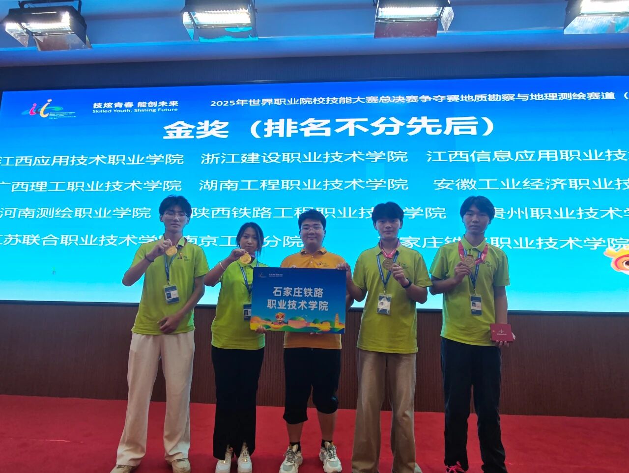 2025年8月25日至30日,世界職業院校技能大賽總決賽地質勘察與地理測繪賽道(高職組)爭奪賽在江西應用技術職業學院成功舉行。經過激烈角逐,石鐵院測繪工程系王政、信蘇哲、竇甜甜、張旭闊四位同學組成的參